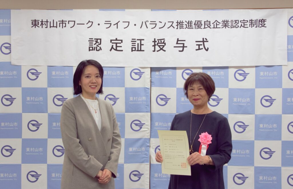 令和7年11月25日(火)、東村山市役所にて「令和7年度 東村山市ワーク・ライフ・バランス推進優良認定証授与式」