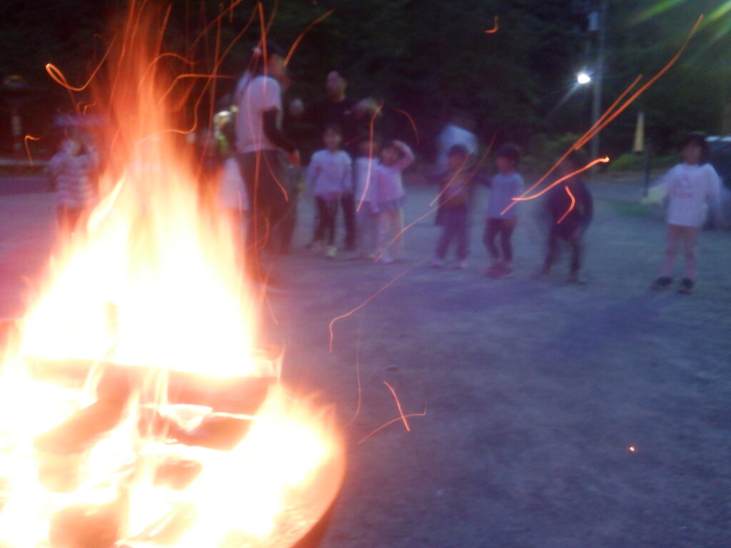 火の周りで歌って、踊って♪最後に噴き上げ花火。大興奮でした。