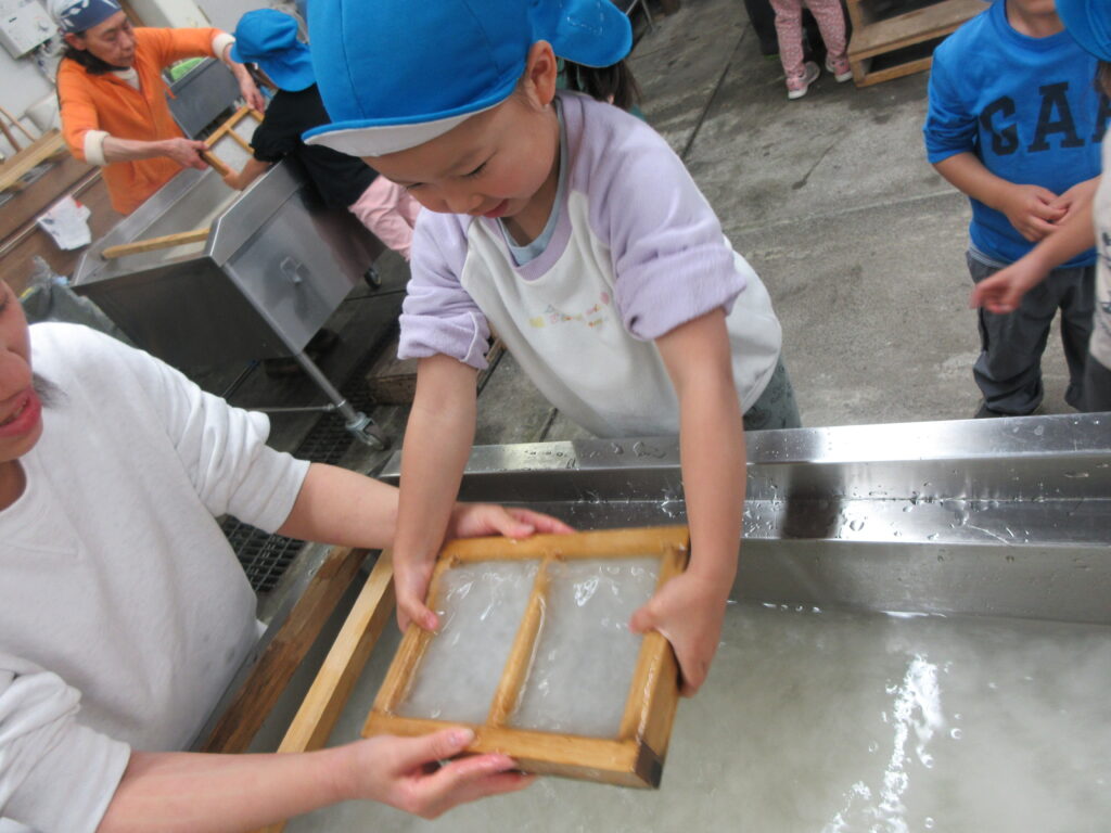 はじめは泳ぐマスにドキドキ。時間が経つと自分からマスを追い込み、つめるようになりました✨