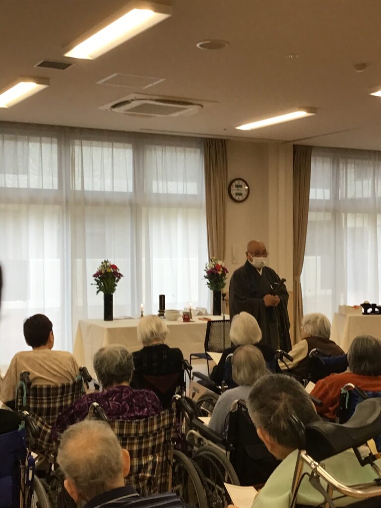 三月六日(水)、地域交流スペースにて、春の彼岸法要を執り行いました。和尚さんによる、大変為になるお話をお伺いさせていただいた他、皆様お焼香を行い、お経と説法を目を閉じ、手を合わせて聞いていらっしゃいました。「線香の匂いだ、懐かしいね」と利用者からの声も聞かれました。