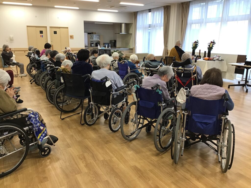 3月19日(水)、多目的ホールにて、お坊さんに来て頂き、春の彼岸法要を執り行いました。お坊さんによりお経が詠まれる中、静かに目を閉じて瞑想される方、瞑想しながら手を合わせ、故人を偲ばれる方等、十人十色様々な思いを抱きながら、彼岸法要に参加されていらっしゃいました。