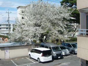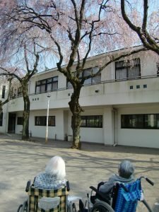 4月上旬、敷地内に咲いた桜を2階の入居者の方々と見に行きました。