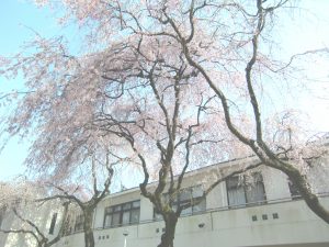 一足先に満開になった枝垂桜はご近所でも有名です。