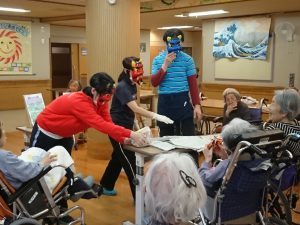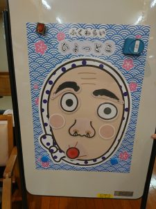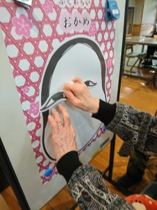 鬼を追い払って、福を祝い、“福笑い”で楽しみました。