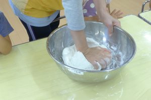 お月見団子作りをしました。粉が固まっていく様子や、