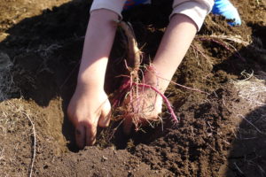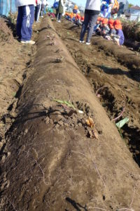 ひんやり・ふんわりした土を掘っていくとお芋が顔を出し子どもたちは必至で掘ってました。