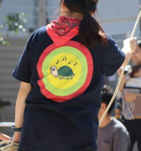 職員全員おそろいの「カメ吉Тシャツ」ひよしのアイドル!?