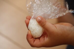 その前に…炊きたてもち米を一口パクリ…