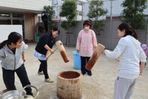 ひよしっ子がお餅つきを行いました。