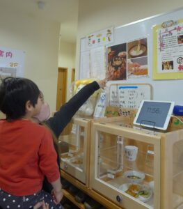お迎え時に保護者の方と給食の見本を見ながら保護者の方へ説明してくれる姿もたくさん見かけました。