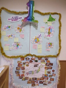 日本縦断の旅は1周を迎えましたが、ひよし保育園の日本縦断はこれで終わりを迎える事はなく、今現在、2周目の旅に向け、園内に日本地図を掲示し保護者の方にも出身地などのおススメの郷土料理を書き込んでいただいているところです。