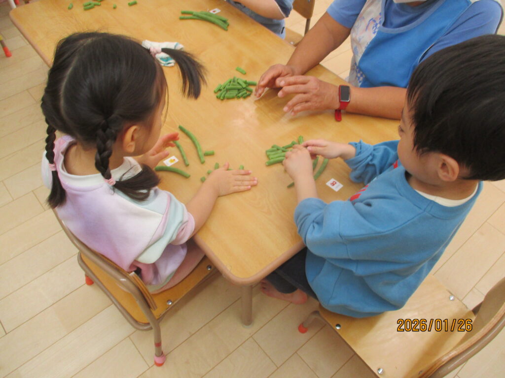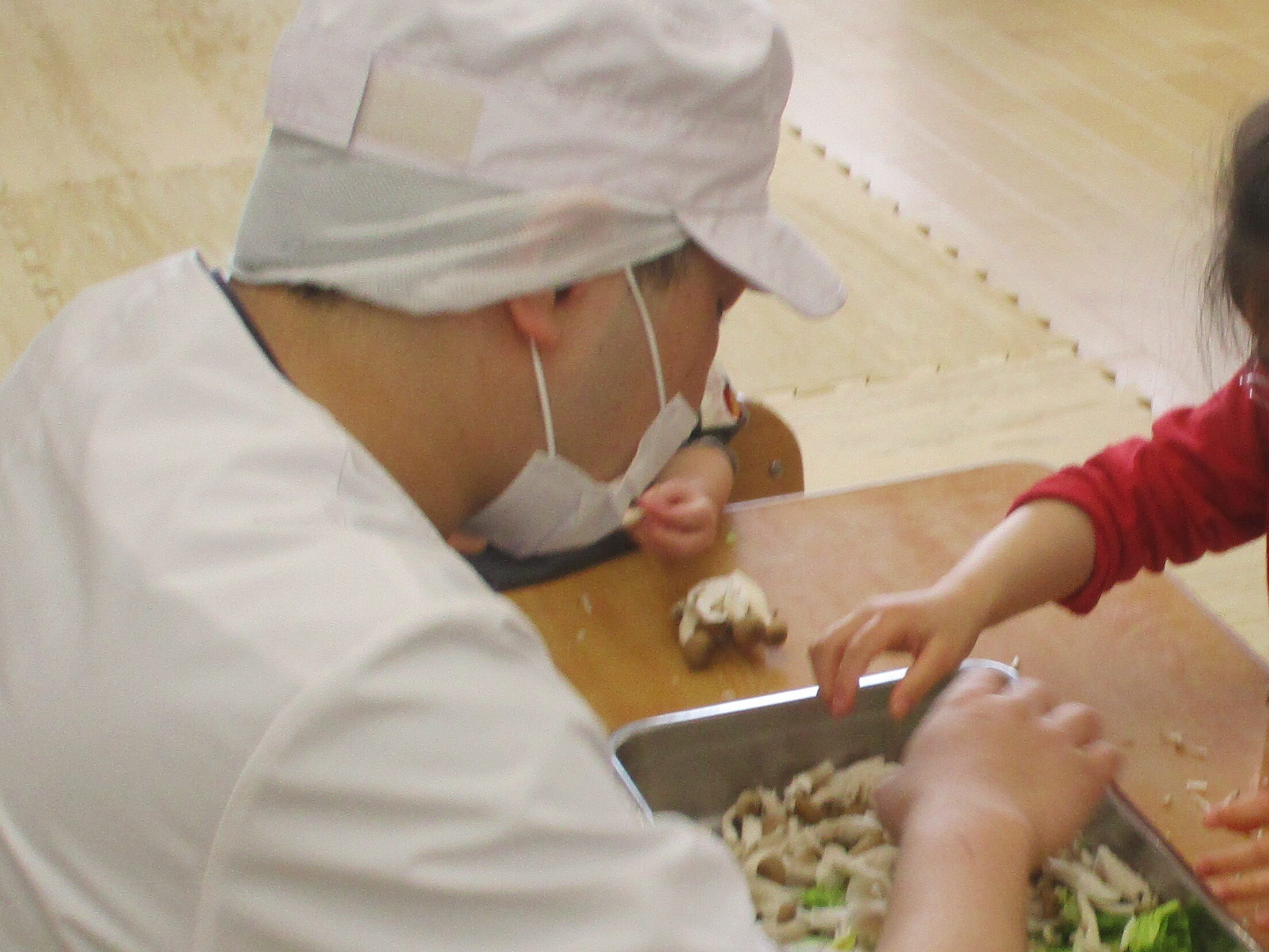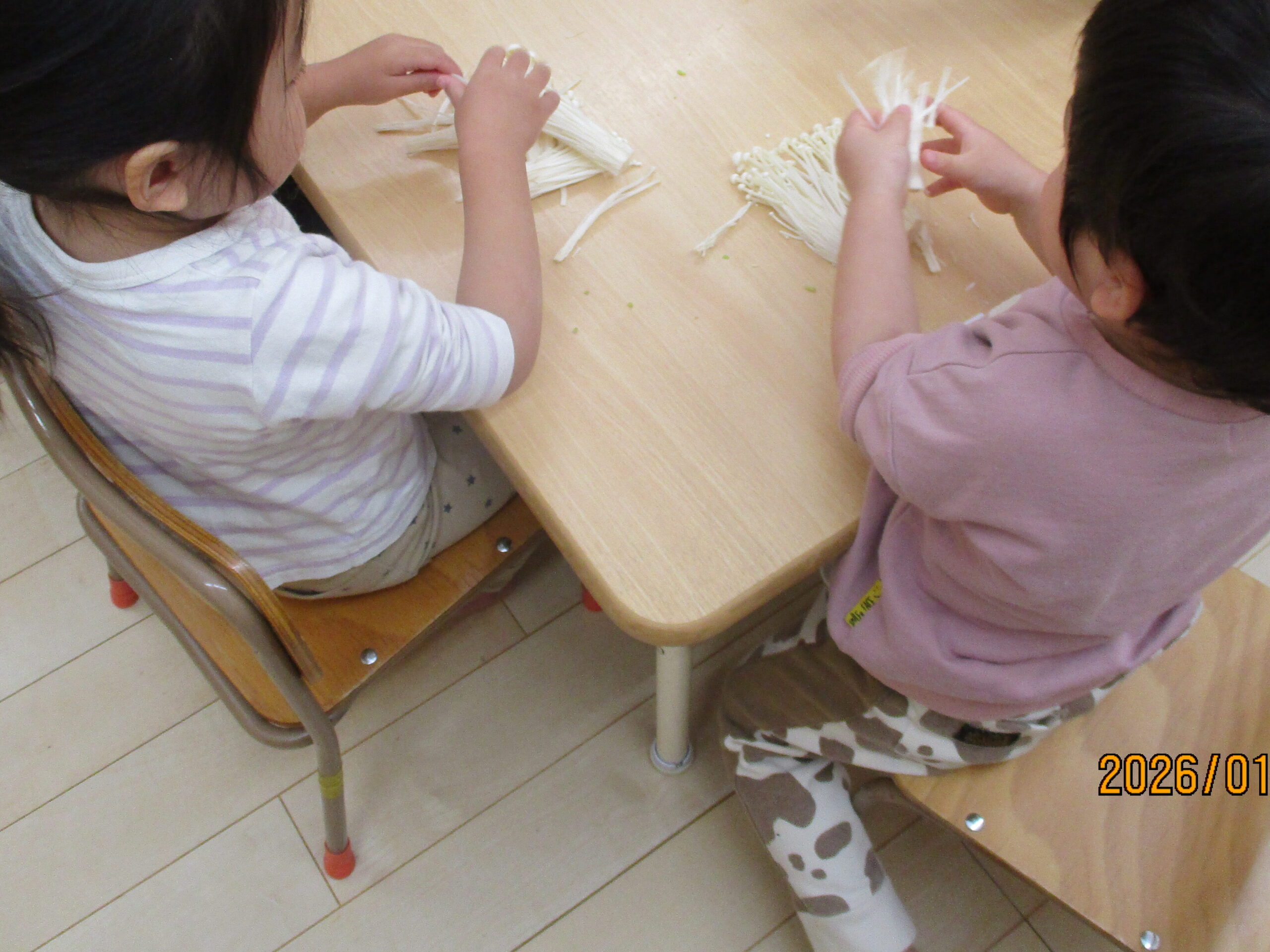 調理さんから「しめじはポキっとするんだよ!」と教えてくれました。