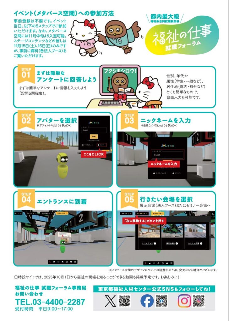 参加方法:事前登録不要!メタバース空間へ直接アクセス(入室用URLはこちら)ください。